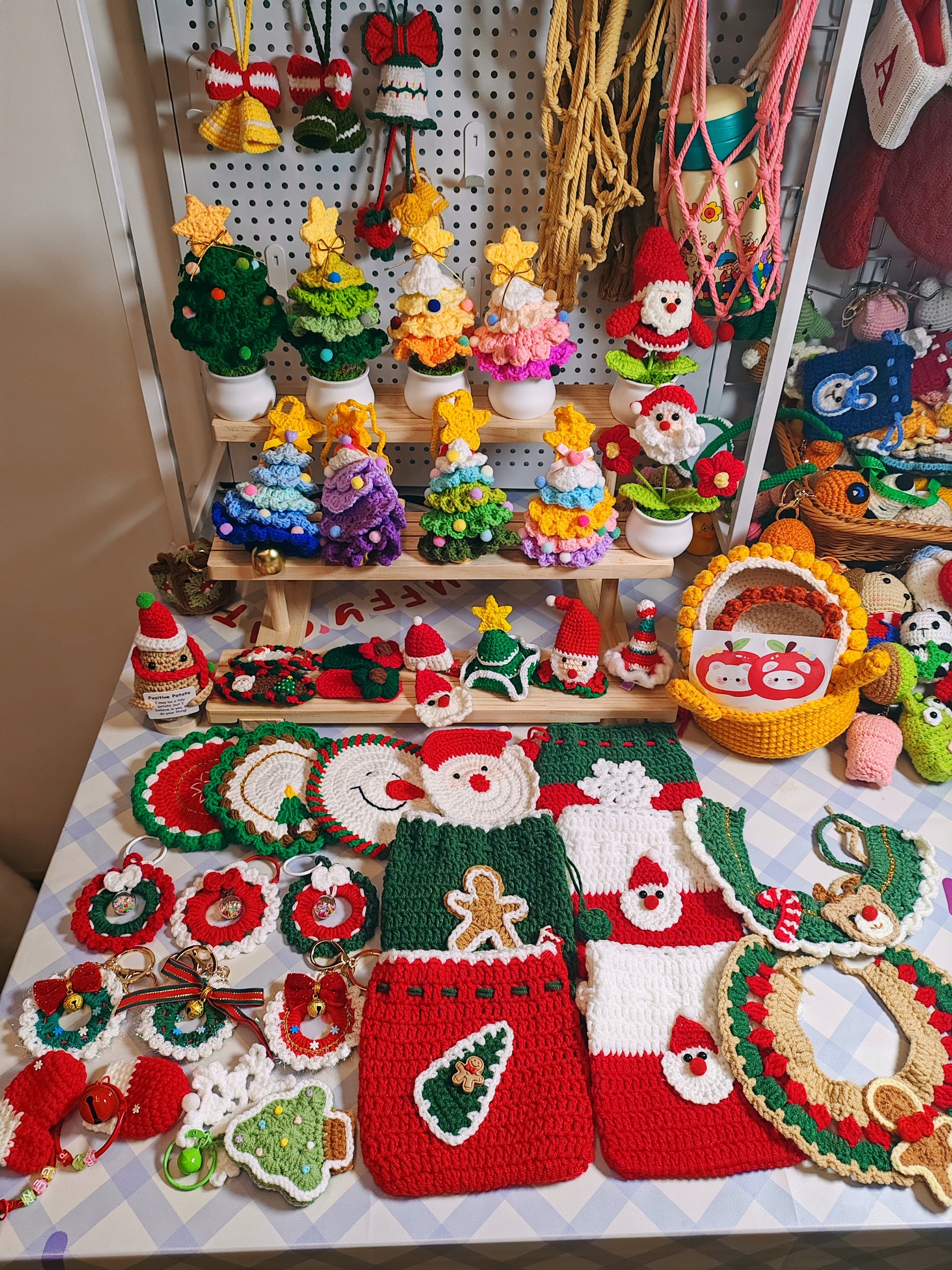 3. Super Deluxe Set (potted plant + bell + drawstring bag + coaster/scarf + 3D hair clip + 2 keychains + plush keychain)